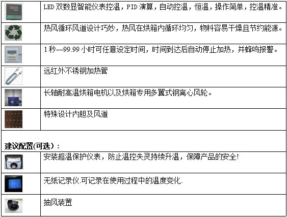 烘箱(包括烘箱的內(nèi)部尺寸,高溫度,箱內(nèi)的配置,箱體的顏色等)